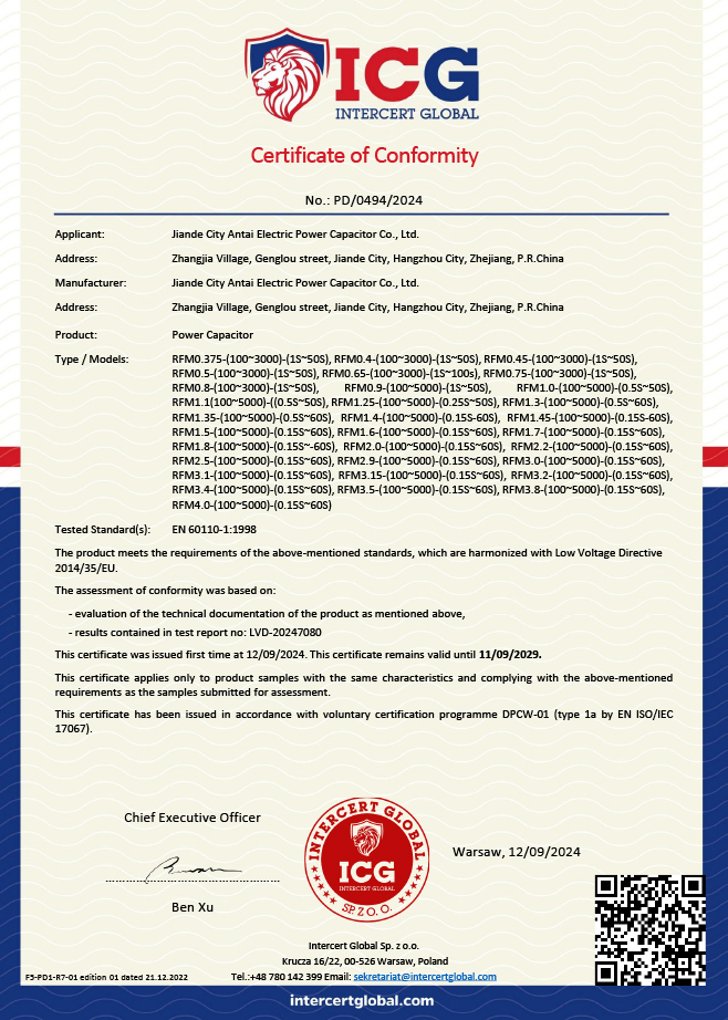 Jiande Antai Power Capacitor Co., Ltd. является профессиональным производителем индукционных обогрева и плавильных конденсаторов с 40 -летним опытом. Наша фабрика составляет более 10 000 квадратных метров и оснащена расширенным индивидуальным механизмом и импортированным сырью. У нас есть квалифицированная команда исследований и разработок и опытный персонал, посвященный предоставлению высококачественных продуктов.